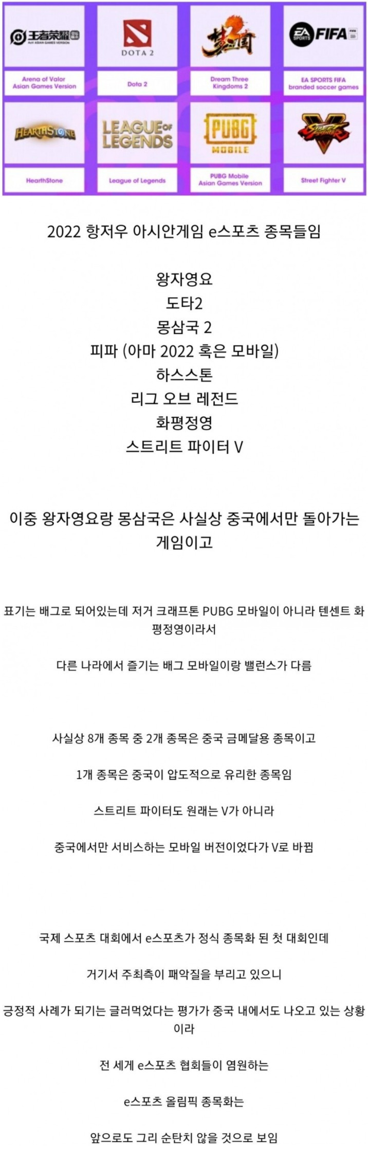게임이 올림픽 종목으로 인정 받기 힘든 이유