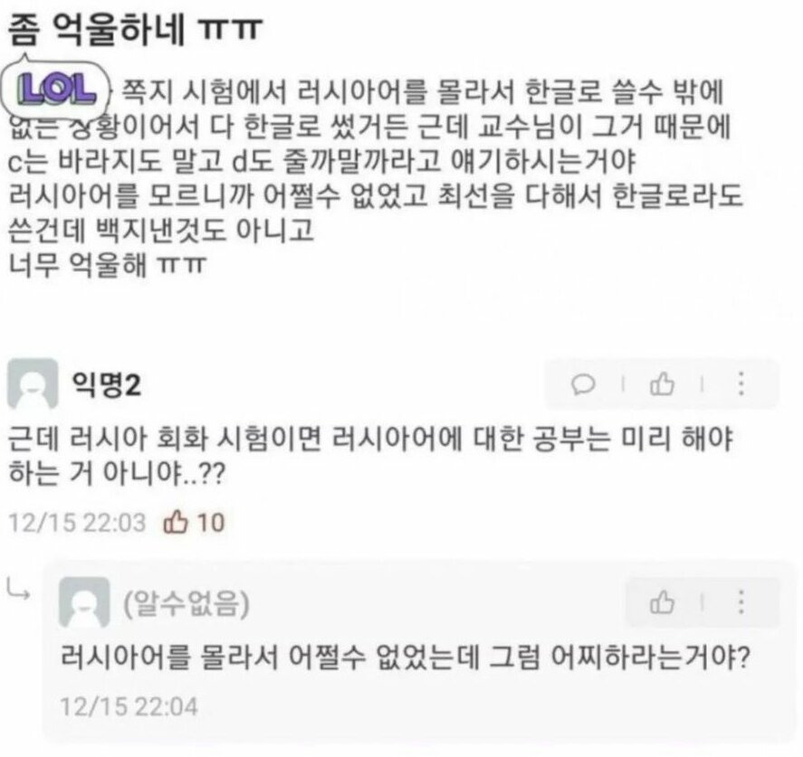 D 받은게 억울하다는 학생