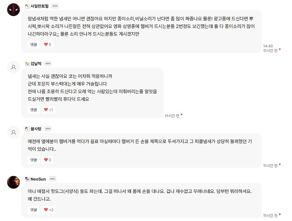 영화관에서 햄버거 먹는것도 민폐인가요?