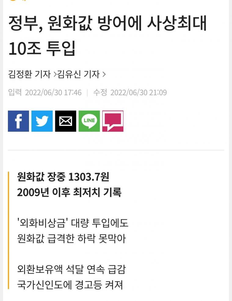 환율 방어에 상반기에만 10조 투입