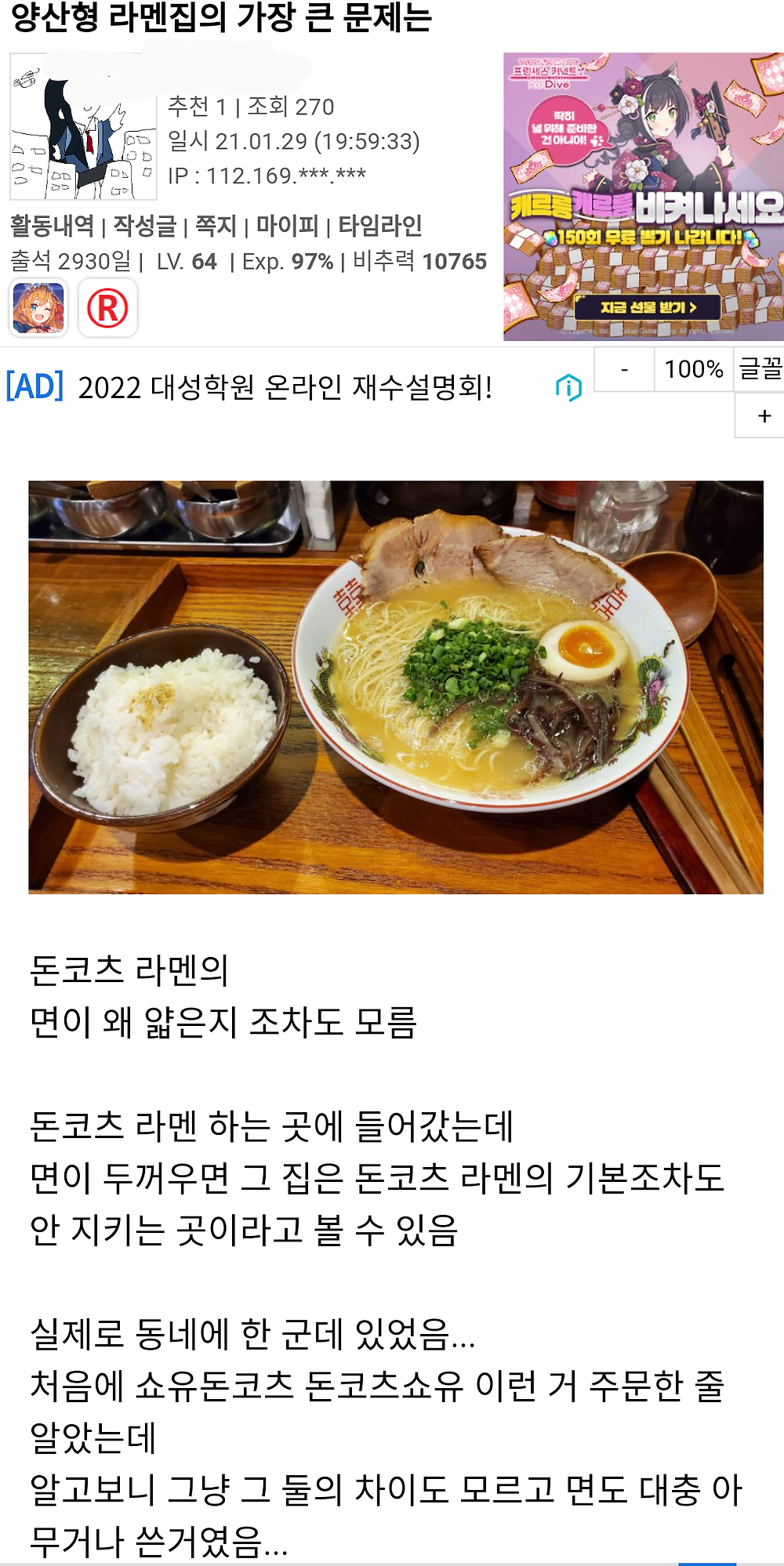 양산형 라멘의 면이 얇은 이유는