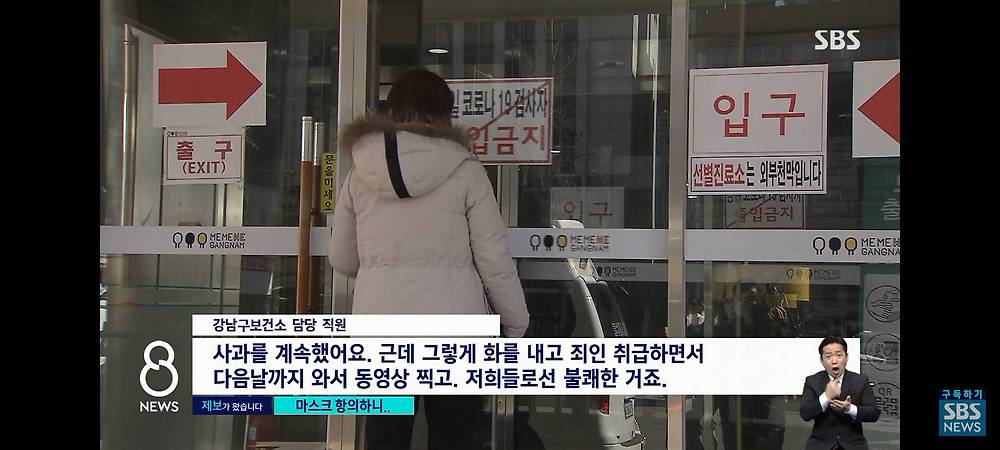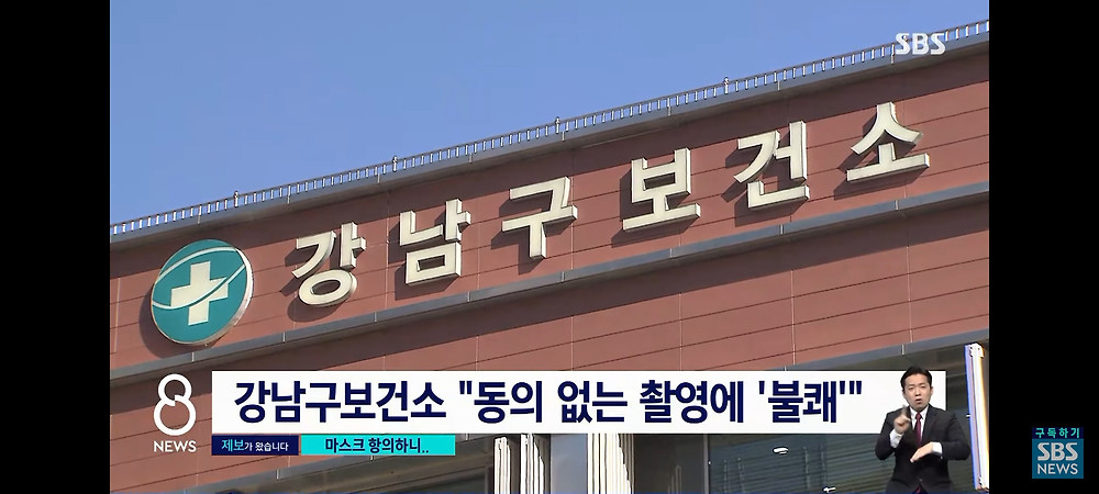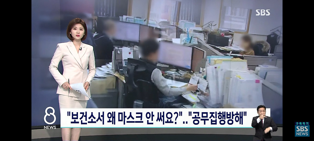 마스크를 안쓴 강남구 보건소 공무원들