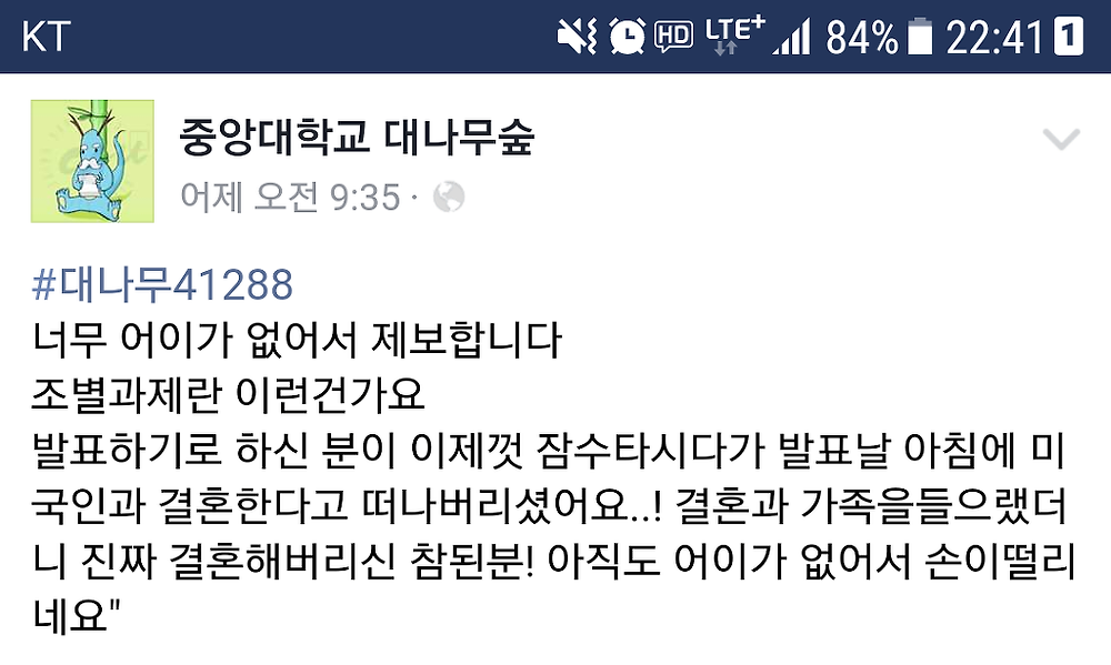 중앙대 ‘결혼과 가족’ 조별과제 탈주 레전드