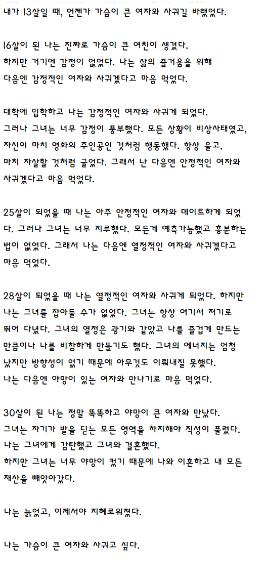 내가 13살일 때 가슴이 큰 여자와 사귀고 싶었다