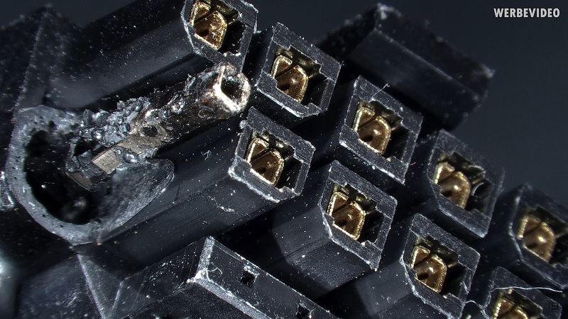 커넥터 번(멜팅)이 발생한 Der8auer 공개 12VHPWR 케이블