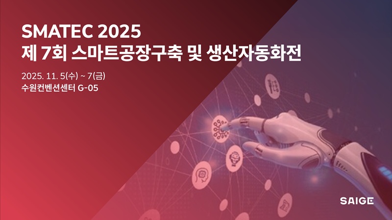 산업 특화 비전 인공지능(AI) 기업 세이지(SAIGE, 공동대표 박종우·홍영석, www.saige.ai)가 오는 11월 5일부터 7일까지 수원컨벤션센터에서 개최되는 ‘제7회 스마트공장구축 및 생산자동화전(SMATEC 2025)’에 참가한다고 밝혔다.