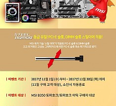 ㈜엠에스아이코리아(http://kr.msi.com, 대표 공번서)는 11월 한 달 간 AMD 라이젠 시스템 구성을 위한 ATX메인보드 중 최고의 가성비를 제공하는 ‘MSI B350 토마호크’, ‘MSI B350 토마호크 아틱’ 제품을 구매하면 게이밍마우스를 비롯한 푸짐한 경품을 증정하는 이벤트를 진행한다고 밝혔다.이번 이벤트는 2017년 11월 1일(수)부…