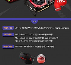 MSI, 지포스 GTX1060 트윈프로져6 구입하면 3종 경품 증정 이벤트 진행