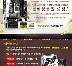 ASRock 공식 유통사 디앤디컴㈜(대표: 최유길)은, 7세대 인텔 카비레이크 메인보드 중 선풍적인인기를 끌고있는 ‘ASRock B250M PRO4 디앤디컴’ 제품 구매자에게 ‘컬쳐랜드 5천원 문화상품권’ 증정이벤트를 진행한다.이번 이벤트는 2017년 9월 1일부터 한정수량 2,500대로 진행되며, 디앤디컴 공식 판매점에서 제품구매 시 받을 수 있으므로 구…