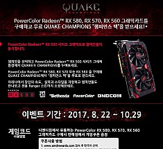 PowerColor 공식 유통사 디앤디컴(주)(대표: 최유길)은, ‘PowerColor 라데온 RX 560, RX 570, RX 580’그래픽카드 구매 시 퀘이크 챔피언스 게임에 사용할 수 있는 ‘챔피언스 팩’을 증정한다고 밝혔다.‘챔피언스 팩’은 퀘이크 챔피언스 게임 내에서 모든 영웅을 사용할 수 있는 팩으로 더욱 특별하게게임을 즐길 수 있다.대상모델은 …