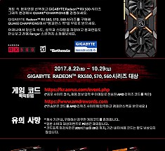 GIGABYTE Technology Co., LTD (이하 기가바이트)의 공식 공급원인 제이씨현시스템㈜ (대표: 차현배)에서는 2017년 8월 22일(화) 부터 AMD와 함께 GIGABYTE 라데온 RX580, 570, 560 시리즈 그래픽카드를 구매한 고객을 대상으로 퀘이크 챔피언스 게임을 더욱 특별하게 즐길 수 있는 '챔피언스 팩'을 증정하는 행사를 진…