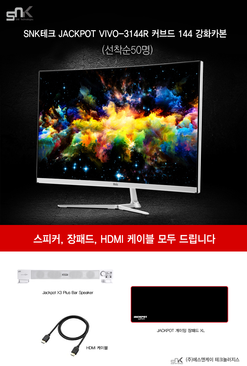 (주)SNK테크, SNK테크놀러지스, 잭팟, Jackpot, 모니터, VIVO-3144R 커브드 144 강화카본, 구매자 대상, 사은품 제공, 이벤트, 진행,