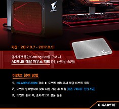 GIGABYTE Technology Co., LTD (이하 기가바이트)의 공식 공급원인 제이씨현시스템㈜ (대표: 차현배)에서는 2017년 8월 7일(월) 부터 8월 31일(목) 까지 'GIGABYTE AORUS GTX1070 Gaming Box'를 구매한 고객을 대상으로 특별제작한 'AORUS 메탈 마우스패드'를 증정하는 행사를 진행하고 있다.기가바이트GT…
