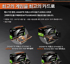 GIGABYTE Technology Co., LTD (이하 기가바이트)의 공식 공급원인 제이씨현시스템㈜ (대표: 차현배)에서는 2017년 8월 1일(토) 부터 한달 동안 기가바이트 지포스 GTX1080 Ti AORUS 시리즈 그래픽카드 구매자에게 '배틀그라운드' 게임코드를 증정행사를 앵콜 진행하고 있다고 밝혔다.지난 7월 한달 간 진행된 배틀그라운드 증정행…