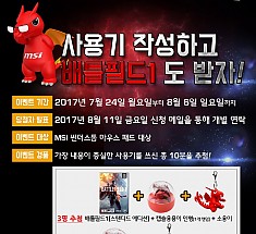 ㈜엠에스아이코리아(http://kr.msi.com, 대표 공번서)는 MSI의 프리미엄 마우스 패드 ‘MSI 썬더스톰’ 제품에대한 사용기를 작성하는 고객에게 최고의 대작 FPS ‘배틀필드1’과 MSI의 인기 마스코트 ‘캡슐용용이’와‘소용이’ 인형 등 다양한 경품을 제공하는 행사를 진행한다고 밝혔다.이벤트 기간은 2017년 7월 24일 월요일부터 8월 6일 일…