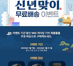 ㈜엠에스아이코리아(https://kr.msi.com, 대표 공번서)는 국내 대표 컴퓨터 종합 쇼핑몰 ‘컴퓨존’에서 2025년신년을 맞이하여 MSI의 게이밍 기어를 구매한 고객을 대상으로 무료 배송 이벤트를 진행한다고 밝혔다.2025년 1월 7일부터 1월 31일까지 진행되는 이번 행사는 컴퓨존에서 이벤트 대상 제품 구매 시 무료 배송쿠폰을 지원한다. 재고 소…