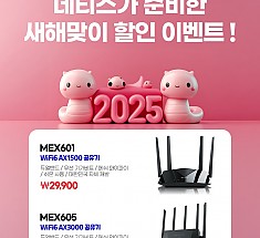 네트워크 전문기업 (주)넷유(www.netu.co.kr)가 2025년 새해를 맞아 할인 이벤트를 진행한다. 이번 새해맞이 할인 이벤트는 네티스(netis)의 스테디셀러 제품인 MEX605를 포함한 와이파이6(802.11AX)공유기 2종(MEX605,MEX601)을 대상으로 1월13일부터 1월23일까지 진행한다.netis MEX605는 와이파이6(802.11…