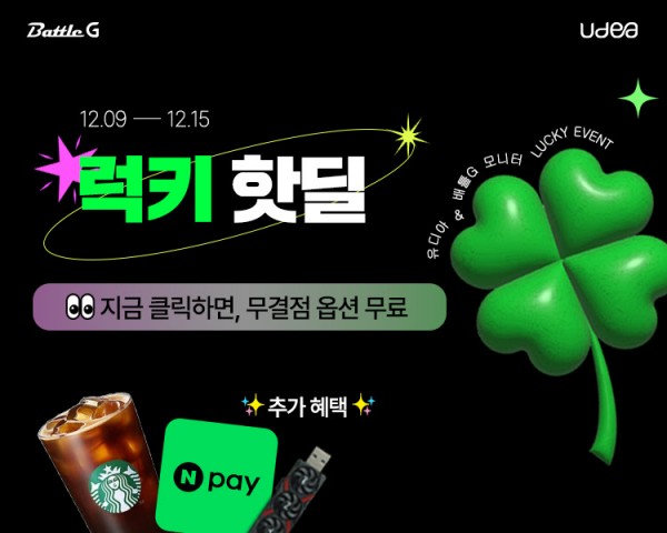 행사 기간 동안 유디아 & 배틀G 모니터를 구매한 고객에게는 스타벅스 커피 기프티콘을 1:1 증정하여, 소소한 즐거움까지 제공한다.