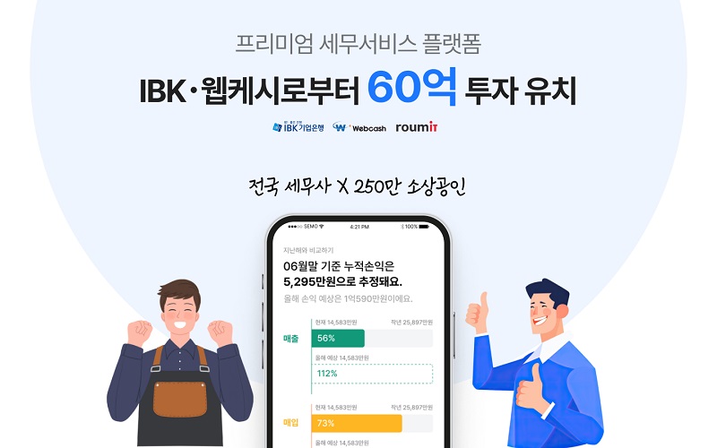 로움아이티(대표 박승현)의 세무사를 위한 프리미엄 보고서 서비스 ‘세모리포트’가 IBK기업은행, 웹케시로부터 총 60억 원 규모의 투자를 유치했다고 28일 발표했다.