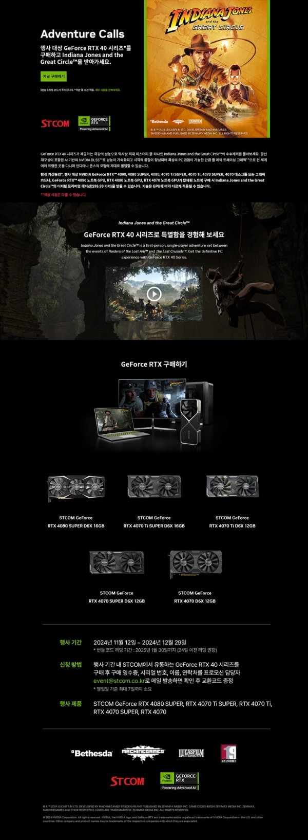 에스티컴퓨터, STCOM, 지포스 RTX 40 시리즈, 그래픽카드, 구매자 대상, 인디아나 존스, 게임 번들, 증정, 행사, 진행