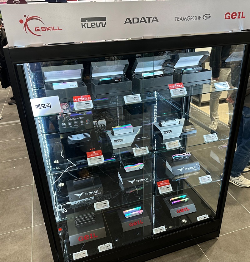 서린씨앤아이가 유통하는 다양한 고성능 메모리 제품들은 전용 전시대를 통해 비치되어 RGB 지원 제품의 경우 화려한 조명 효과를 직접 체험할 수 있다. 특히, 지난 달 처음 유통을 시작한 ADATA의 신제품도 전시 제품에 포함되어 있어 제품 구매 전 실물 확인이 가능하다.