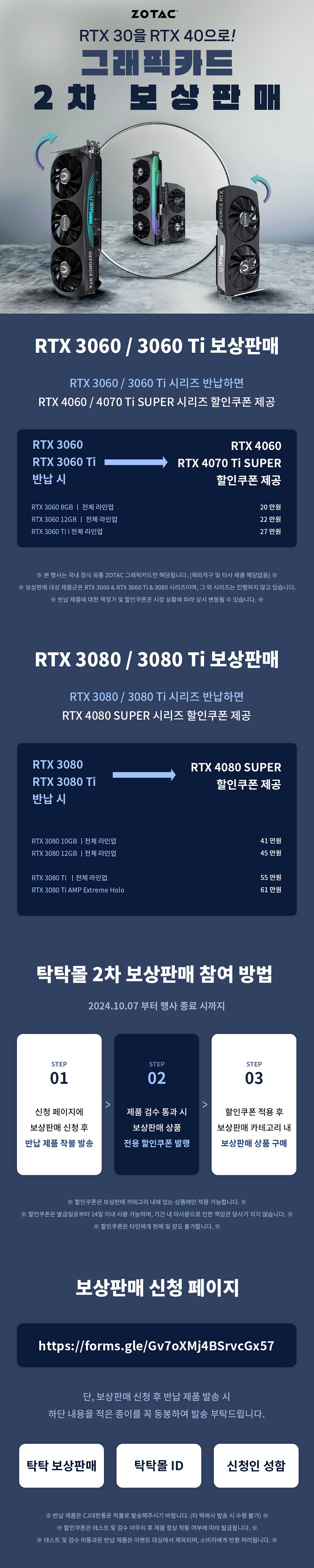 조텍, 조텍코리아, ZOTAC, ZOTAC Korea, RTX 30, RTX 40, 구매하는, 그래픽카드, 보상판매, 2차, 진행