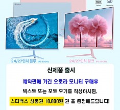 디스플레이 전문 브랜드 픽셀아트(대표 조재훈)가 오로라(Aurora) 핑크·블루 컬러 모니터를 출시하고, 이를 기념으로 예약 판매 이벤트를 연다고 밝혔다.9월 26일부터 10월 6일까지 진행되는 예약 판매 통해 신제품을 구매 후 텍스트 또는 포토 후기를 작성, 인증하면 스타벅스 모바일 상품권 1만원을 증정한다. 신제품은 4종으로 PAC2499B, PAC24…