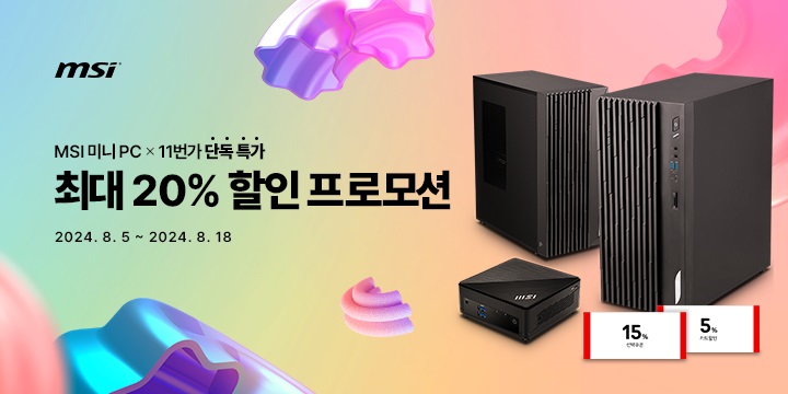 2024년 8월 5일부터 18일까지 진행되는 이번 할인 프로모션은 작은 사이즈에 강력한 데스크탑 성능을 발휘하여 공간 활용도를 높이며, 가정부터 비즈니스 환경까지 폭 넓게 사용되는 MSI 미니PC를 대상으로 진행된다.