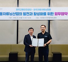 한국자동차튜닝협회(회장 승현창)는 24일 한국교통안전공단 튜닝안전기술원(원장 김장희)과 자동차튜닝산업의 발전과 활성화를 위한 업무협약(MOU)을 체결했다.이번 업무협약을 계기로 튜닝부품인증제도를 운영하는 한국자동차튜닝협회와 튜닝부품 안전확인제도를 시행하게 된 튜닝안전기술원 양 기관은 소비자의 니즈를 반영한 다양한 튜닝부품에 대한 인증기준 제정 및 운영을 통…