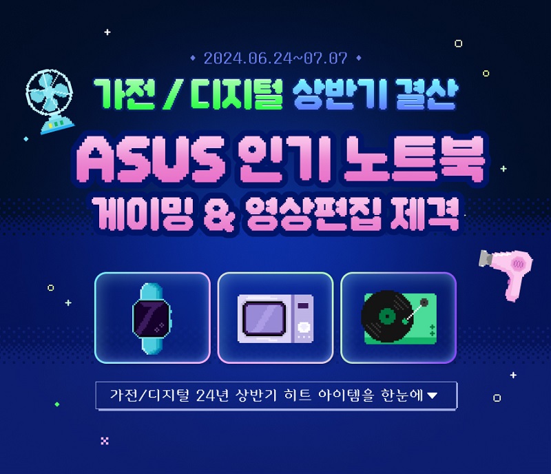 ASUS 공식 유통사 ㈜에스라이즈는 6월 24일부터 7월 7일까지 진행되는 네이버 상반기 결산 프로모션에 참여한다고 밝혔다. 네이버 상반기 프로모션은 24년 상반기에 많은 사랑을 받았던 인기 제품을 한눈에 볼 수 있는 특별 프로모션이다.