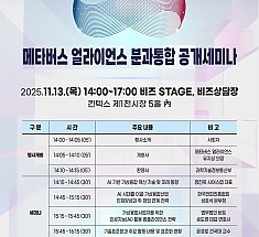 메타버스 얼라이언스(의장 유지상) 사무국(한국메타버스산업협회)은 오는 11월 13일(목) 오후 2시 일산킨텍스 제1전시장 5홀에서 ‘2025 메타버스 얼라이언스 분과통합 공개세미나’를 개최한다고 밝혔다. 이번 세미나는 메타버스 얼라이언스에서 운영 중인 4개 분과의 연간 활동 성과를 공유하고, AI(인공지능) 융합이라는 최신 트렌드 속에서 메타버스 산업의 현…