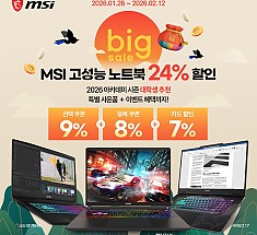 ㈜엠에스아이코리아(https://kr.msi.com, 대표 공번서)는 오는 1월 26일(월)부터 2월 12일(목)까지진행되는 G마켓 설 빅세일에 참여해, MSI 노트북 전 제품을 대상으로 제품별 최대 24% 할인 혜택을제공하는 프로모션을 선보인다.이번 프로모션에서는 9%(최대 60만 원) 선택 쿠폰과 8%(최대 8만 원) MSI 중복 쿠폰, 7%(최대 15…