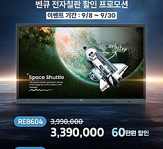글로벌 디스플레이 전문 브랜드 벤큐(지사장 소윤석, www.benq.co.kr)는 자사 전자칠판 구매 고객을 대상으로 한 클래스룸케어™ 인증 프로그램이 700호점을 돌파했다고 발표했다. 이를 기념하여 9월 8일부터 9월 30일까지 할인 프로모션을 진행한다. 이번 행사에서는 벤큐 전자칠판 RE 시리즈 주요 모델을 최대 60만 원 할인된 가격으로 구매할 수 있…