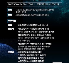 시민의 창의성을 지탱할 핵심 역량인 AI 및 디지털 미디어 리터러시를 주제로 한 ‘문화강국네트워크 제5차 정책토론회’가 오는 9월 3일(수) 오후 2시 국회의원회관 제1간담회실에서 열린다.이번 토론회는 국회 문화체육관광위원회 위원장 김교흥 국회의원을 비롯해 김준혁, 이기헌, 임오경 국회의원이 공동 주최하고, 문화강국네트워크(이사장 이우종)와 전국미디어센터협…