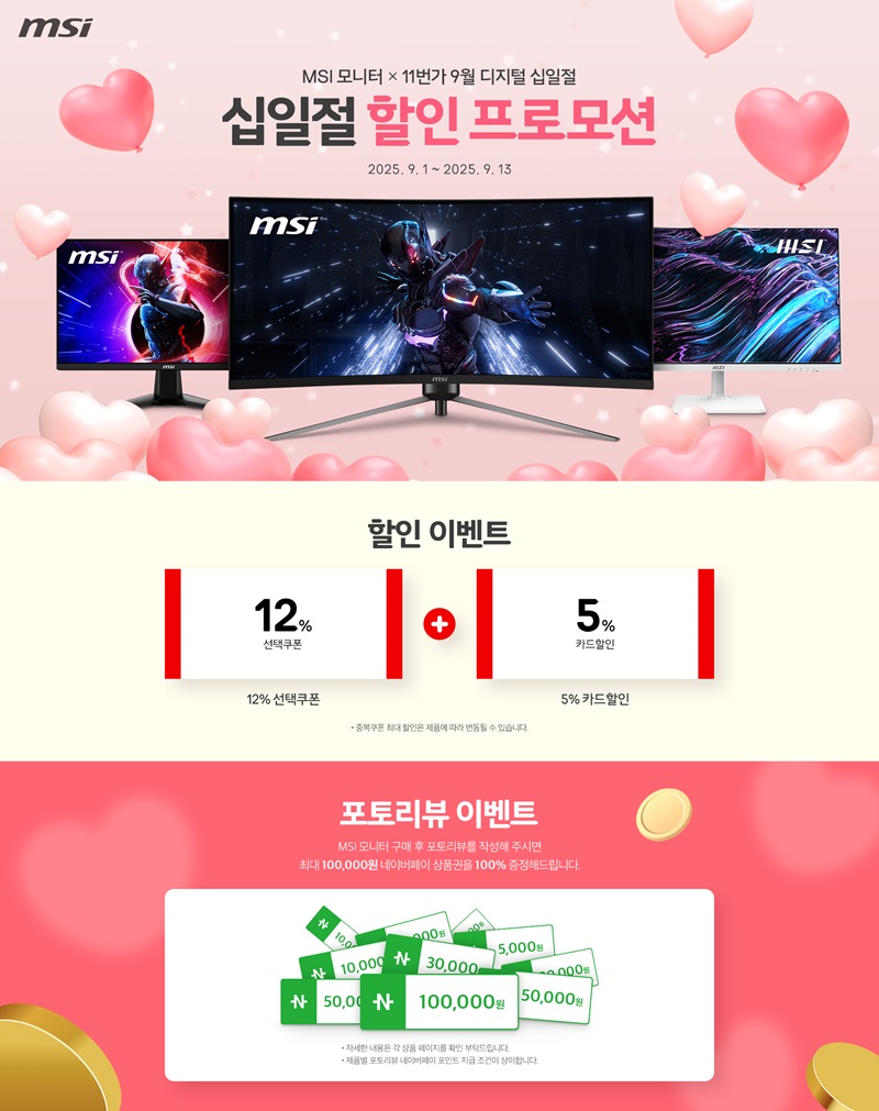 (주)엠에스아이코리아, 엠에스아이, MSI, MSI Korea, 12%, +, 5%, 모니터, 세일, 11번가, 11st, 9월, 십일절, 행사로, 여름, 특가, 진행