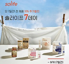 프리미엄 비타민 전문기업 한국솔가, 소버스가 9월 ‘솔라이프7데이’ 프로모션을 오늘 10일까지 연다고 4일 밝혔다.솔라이프7데이 프로모션 상품은 ▲솔가 엽산 400(250정/250일), ▲솔가 엽산 800(60정) + 철분 25(60캡슐),▲솔가 멀티-빌리언 도필루스 프로바이오틱스 (60캡슐/2개월), ▲솔가 면역 비타민D 위드 아연(60정/2개월)▲솔가 …