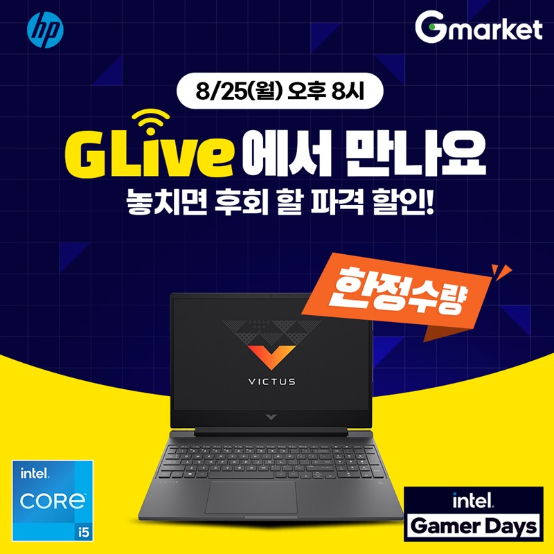 HP 공식 유통사 에스라이즈는 8월 25일부터 9월 7일까지 지마켓에서 열리는 ‘인텔 게이머 데이’에 참여한다고 밝혔다. 행사 첫날인 25일에는 G.LIVE를 통해 가성비 게이밍 노트북 빅터스 15-fa2710TX를 소개하며 특별 혜택을 제공할 예정이다.