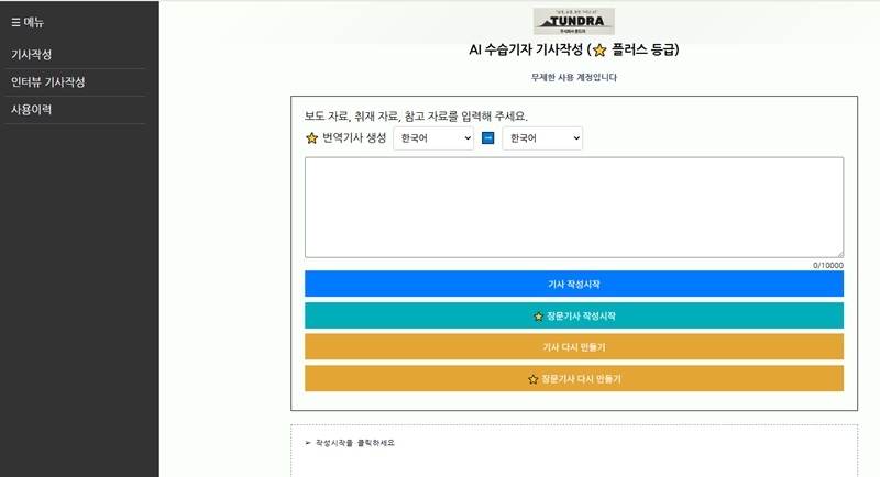 툰드라 로그 분석에 따르면 보도자료 한 건당 평균 15분이 걸리던 작업이 2분으로 단축돼 87%의 시간 절감 효과가 확인됐다. 최소 3000만원 이상이 드는 자체 AI 구축 비용이 들지 않고, 월 사용료만 납부하면 1주일 만에 실무 적용이 가능하다. 현재 이용 중인 언론사들은 기사 초안 생성 속도와 품질 모두 만족스럽다는 평가를 내놓고 있다.