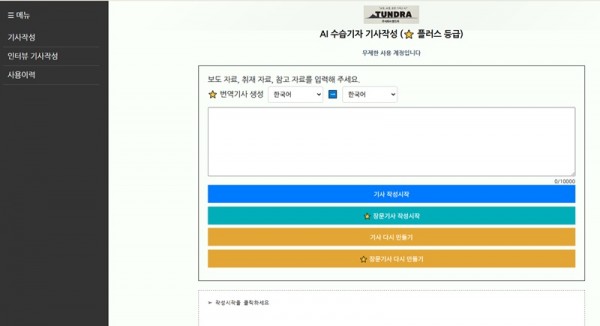 툰드라는 28일 기사 초안 자동화 서비스 ‘AI수습기자’에 CMS(콘텐츠관리시스템) 원클릭 송고 기능을 적용, 기사 작성부터 송고까지 전 과정을 한 화면에서 처리할 수 있게 됐다고 밝혔다. 최근 다음카카오가 신규 언론사 입점을 10개 분야 전문 매체로 한정한 가운데 AI수습기자는 중소 언론사의 전문 보도 역량을 높일 솔루션으로 주목받고 있다.
