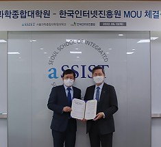 서울과학종합대학원대학교(aSSIST, 총장 김태현)는 한국인터넷진흥원(KISA, 원장 이원태)과 정보보호 분야의 공동 연구 개발 및 전문 기술인 양성을 위한 업무 협약(MoU)을 서울과학종합대학원대학교에서 5월 12일(목) 체결했다고 밝혔다.양 기관은 이번 협약을 통해 △정보보호 분야 관련 기술 정보 교류 및 공동 연구, 세미나 개최 △정보보호 분야 학위 …