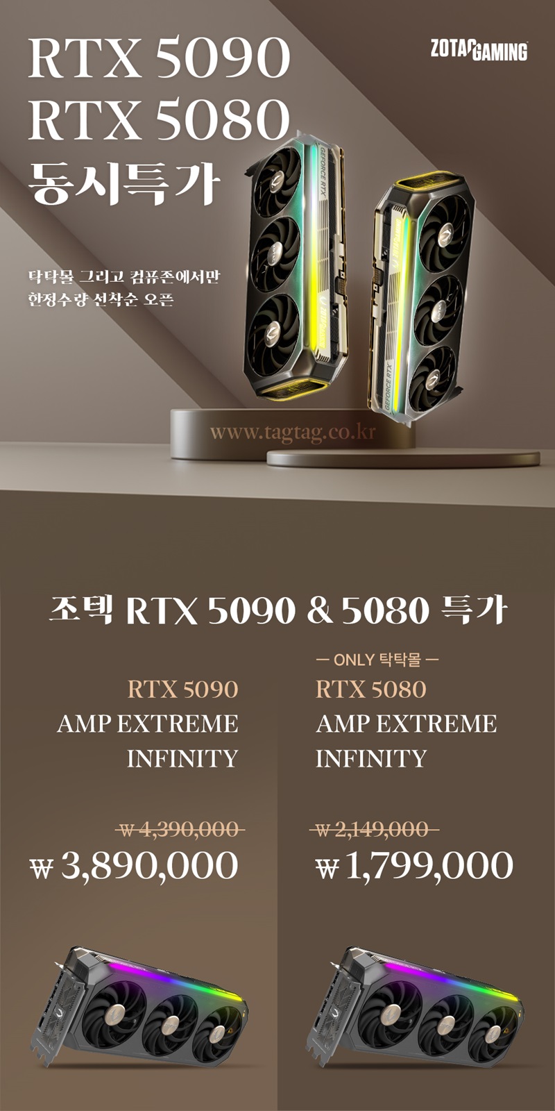 조텍코리아(ZOTAC Korea, 대표이사 김성표, www.zotackor.com)는 자사의 RTX 5090 및 RTX 5080 그래픽카드를 한정 수량으로 특가 이벤트를 진행한다.