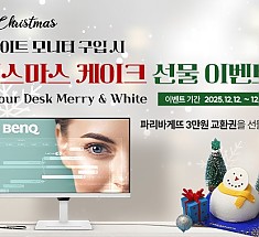 글로벌 디스플레이 브랜드 벤큐(지사장 소윤석, www.BenQ.co.kr)는 12월 크리스마스 시즌을 맞아 자사의 아이케어, 엔터테인먼트, 게이밍 화이트 모니터 구매자에게 3만원 상당의 파리바게뜨 케이크 교환권을 증정하는 행사를 진행한다고 밝혔다.‘화이트 크리스마스’를 기원하는 마음을 담아 진행되는 이번 행사는 행사 기간 중 벤큐의 아이케어/엔터테인먼트/게…
