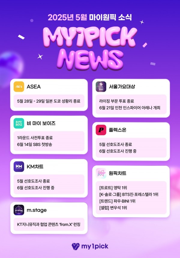 IT | 마이원픽 5월 결산, 서울가요대상·ASEA 투표 성료… KT지니뮤직과의 협업 콘텐츠까지 선보여