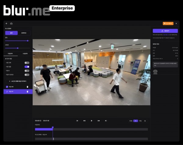 블러미 엔터프라이즈 엣지는 영상 속 얼굴, 차량 번호판 등 민감한 정보를 AI가 자동으로 탐지해 모자이크 또는 블러 처리해주는 솔루션이다. 사람이 직접 작업하면 몇 시간이 걸리는 영상도 블러미는 단 몇 초 만에 처리하며, 수백 장의 이미지도 한 번에 빠르게 처리할 수 있다. 기존에는 이런 작업을 외주 업체에 맡기거나 수작업으로 진행해야 해 시간도 오래 걸리고 비용도 컸지만, 이제는 클릭 몇 번만으로 처리할 수 있어 효율성이 크게 향상된다.