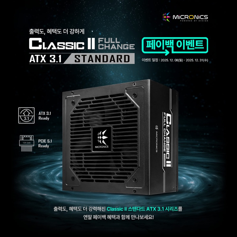 PC | 마이크로닉스, 클래식 II 풀체인지 스탠다드 ATX 3.1 페이백 진행