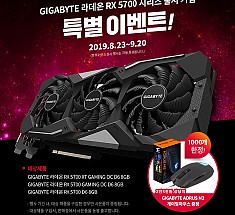 GIGABYTE Technology Co., LTD (이하 기가바이트)의 공식 공급원인 제이씨현시스템㈜ (대표: 차현배)에서는 2019년 8월 23일(금)부터 9월 20일(금)까지, GIGABYTE Radeon RX 5700 시리즈 그래픽카드의 출시 기념 행사를 진행한다.한 달간 진행되는 이번 행사 대상 제품은 7mm 제조공정의 AMD 그래픽 코어를 탑재한…