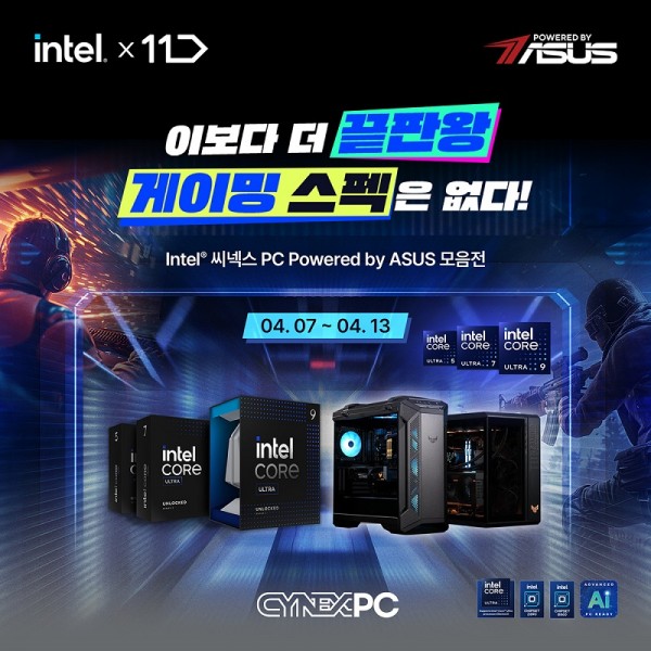 이번 이벤트는 11번가에서 씨넥스존과 협업하여 CYNEX PC중 Powerd by ASUS 구성으로된 제품을 4월 7일부터 일주일 동안 진행되며 에이수스의 높은 신뢰성을 바탕으로 구성된 조립 PC로 준비되어, 차별화된 성능과 안정성 그리고 자신만의 시스템을 구축할 수 있는 기회가 될 것이다.