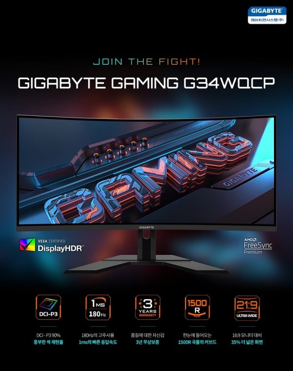 GIGABYTE Technology Co., LTD(이하 기가바이트)의 공식 공급원인 제이씨현시스템㈜(대표: 차정헌)은 2025년 4월, 'GIGABYTE G34WQCP'를 새롭게 출시했다. 기존 사용자들에게 사랑받았던 G34WQC A 제품의 후속제품으로, 최대 180Hz의 주사율을 자랑하는 21:9 와이드 게이밍 모니터이다.