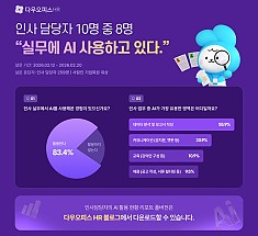 다우기술(대표이사 김윤덕)의 HR솔루션 다우오피스HR이 ‘HR 담당자의 AI 인식 및 현황 조사’ 리포트를 25일 발표했다.본 조사는 HR 플랫폼 사람인을 통해 기업 인사(HR) 담당자 259명을 대상으로 조사됐다. 조사 결과에 따르면 인사 담당자 10명 중 8명 이상이 이미 실무에 AI를 활용하고 있는 것으로 나타나 인사 분야의 디지털 전환이 가속화되고 …