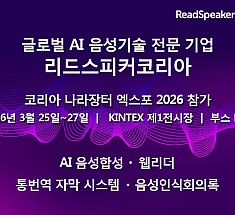 리드스피커코리아(옛 보이스웨어)가 조달청이 주최하는 국내 최대 규모의 조달 전문 전시회 ‘코리아 나라장터 엑스포 2026’에 참가한다고 밝혔다.이번 엑스포는 수요기관과의 협력을 통해 중소·벤처·혁신기업의 공공 판로 확대와 해외 조달시장 진출을 지원하고, 공공조달 분야의 혁신을 선도하는 자리로 마련된다.리드스피커코리아는 이번 전시에서 AI 음성합성(Text-…